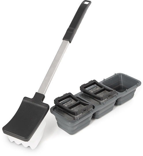 This unique grill cleaning tool uses ice to clean around grids, removing debris, without leaving any residue. Steam quickly evaporates on hot grills. Add a splash of lemon juice to the ice for an all natural de-greaser. Includes 3 ice holders and a 3 block ice tray.Read More
