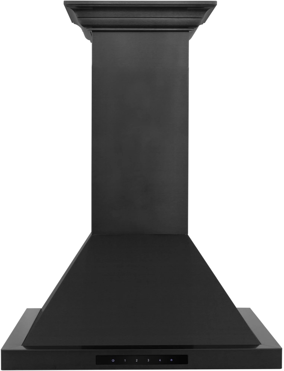 ZLINE 400 CFM Wall Mount Range Hood in Black Stainless Steel with Crown Molding has a modern design and built-to-last quality that would make it a great addition to any home or kitchen remodel. Each piece is hand cut and crafted utilizing premium grade stainless steel which accomplishes its sophisticated “piano black” finish.Read More