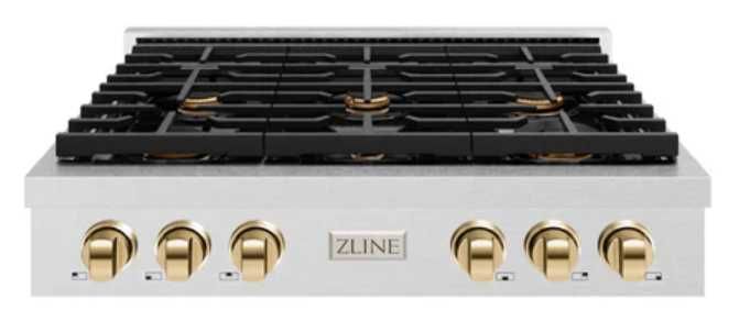 Features 6 Italian-made auto-reignition burners, a hand-crafted porcelain cooktop, enhanced cast iron grates, and elegant polished gold knobs allowing you to master every meal. With a modern, timeless style and refined functionality, ZLINE Paramount Gas Rangetops are masterfully crafted to deliver an elevated culinary experience.
